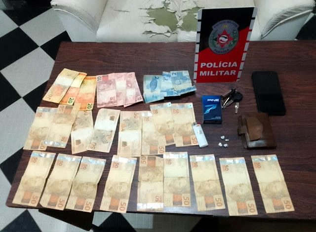 O homem foi conduzido até a delegacia de Polícia Civil, com a moto, a droga e o dinheiro, e entregue ao delegado de plantão.