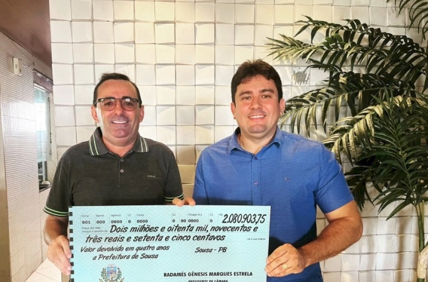 Presidente da Câmara de Vereadores de cidade do Sertão da Paraíba devolve R$ 2 milhões a prefeitura; confira